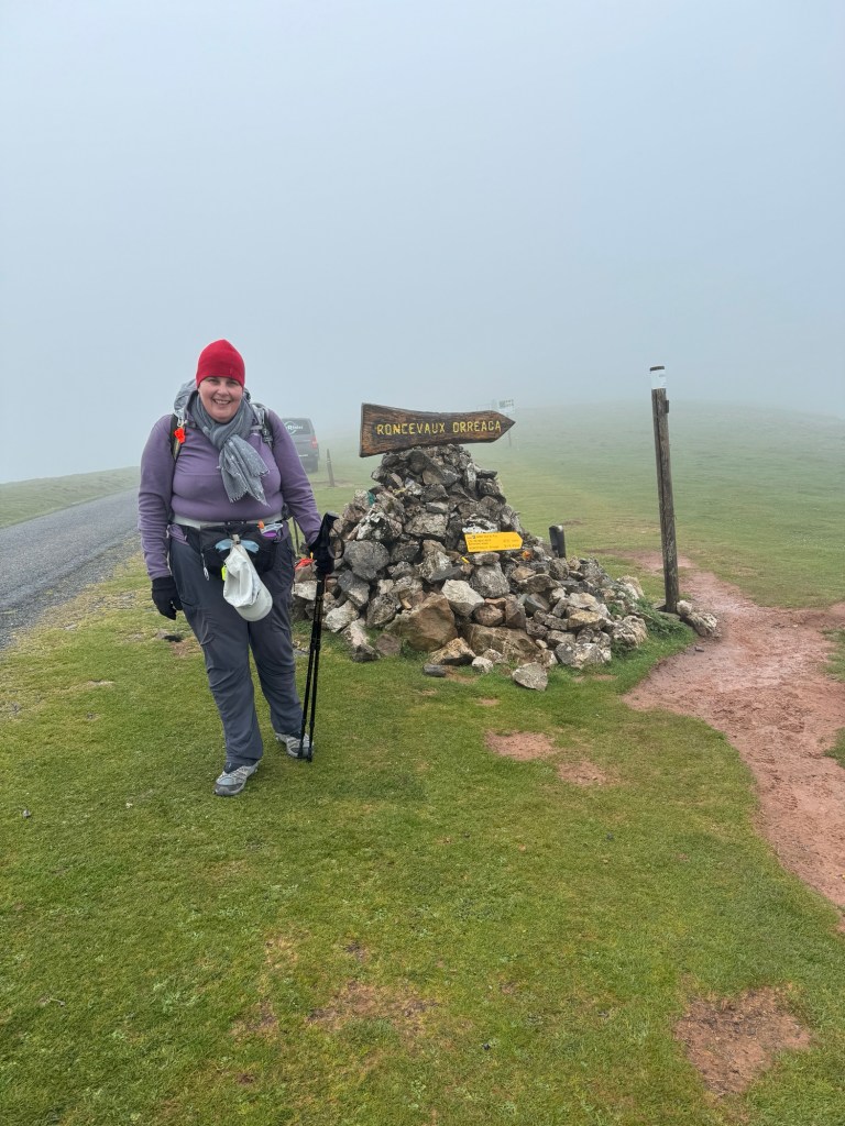 And then just like that after years of dreaming and months of planning I am off. There is light rain and mist its coolish and great walking weather. As we depart St Jean the incline is short and sharp I am soon digging deep with my poles to get me up and up and up. I have my full pack on. I am walking on my own but there are many pilgrims in front and behind me and passing me with calls of Buen Camino. About halfway I stop for coffee at Hunto which I ordered from a French lady who seems surprised people are coming into her cafe it’s very funny and we all seam to have had the same experience with her. The coffee though is excellent and a real reviver. I start talking to 4 ladies, Irish, Dutch and English. We all start walking again and the Irish lady and I fall into a similar rhythm of walking. This continues all the way to Orrison our end point for today. I have made my second Camino friend.