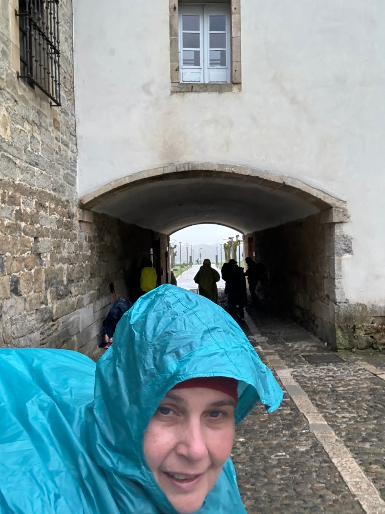 We are heading up again the rain is not hard but we are damp the whole way. We stop for lunch in a little village my Bocadillo is so big I take half with me for later. It’s ham and cheese the ham more like prosciutto, perfect. The walking is up and down but the conversation with my Irish friend keeps the aches at bay.